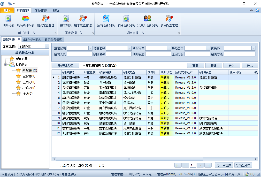 軟件缺陷管理系統,是一款針對項目開發過程中,對缺陷的記錄跟蹤管理的軟件。該軟件以CMMI5內部缺陷管理流程為藍本,提供豐富的缺陷數據管理和完美的權限控制功能,讓您的軟件項目開發過程得到很好的控制,并規范化開發流程。